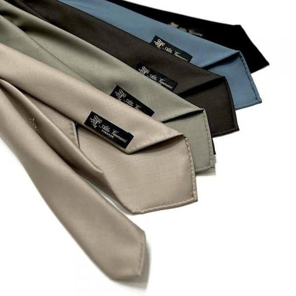 Vannucciの代名詞である7つ折りのオリジナルネクタイ「Sette Pieghe(セッテピエゲ)」はスカーフの様に柔らかく、上品な佇まいが魅力です。